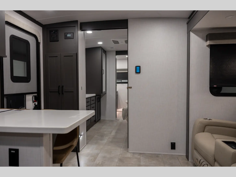 Sleeps 4 Slides 3 Length 36 ft 10 in Ext Width 8 ft Ext Height 11 ft 7 in Hitch Weight 1295 lbs Dry Weight 9474 lbs Cargo Capacity 1821 lbs Fresh Water Capacity 54 gals Grey Water Capacity 131 gals Black Water Capacity 53 gals Furnace BTU 35000 btu Available Beds King Refrigerator Type 12V Cooktop Burners 3 Number of Awnings 2 LP Tank Capacity 30 Lbs. Water Heater Capacity 6 gal Water Heater Type Quick Recovery Gas/Electric TV Info LR Smart TV Awning Info 11' & 17' Power w/Rain Dump and LED Lights Axle Count 2 Washer/Dryer Available Yes Number of LP Tanks 2 Shower Type Shower w/Seat Electrical Service 50 amp Solar Wattage 200 watts Similar Floorplans