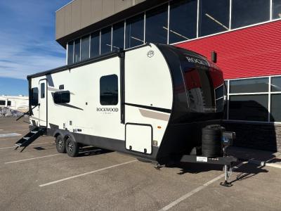 Each Rockwood Ultra Lite travel trailer by Forest River includes superior construction with a high gloss fiberglass cap, aluminum cage construction, and a power awning with LED lighting for a cozy and functional outdoor space. The torsion axle, power tongue jack will make towing smooth and hassle-free, along with the nitrogen filled, Goodyear Endurance tires and the tire pressure monitor system. Interior comforts include kitchen sink with high rise faucet, hidden hinge cabinet doors, and roller shades to name a few. Choose a Rockwood Ultra Lite travel trailer today!
